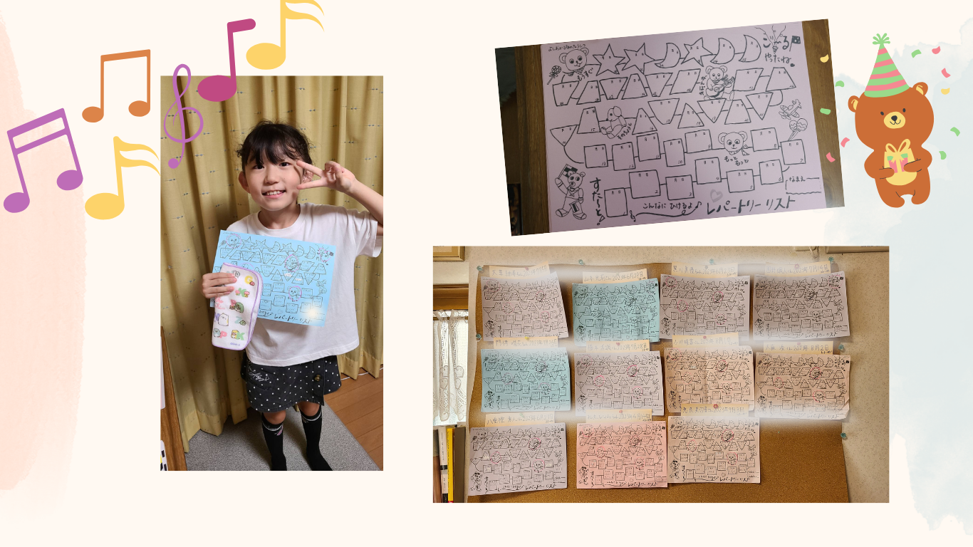 プレゼントのくじ引きはみんな真剣です(笑)リストが一杯になると、教室に掲示します